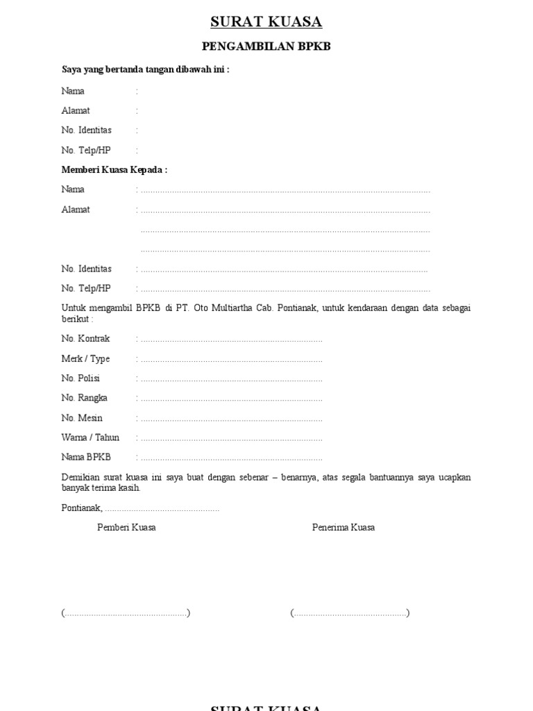 Cara Membuat Surat Keterangan Kuasa Ambil Bpkb : Cara Membuat Surat Kuasa Pengambilan Bpkb Mobil : Contoh surat kuasa pengambilan bpkb motor | teknik.